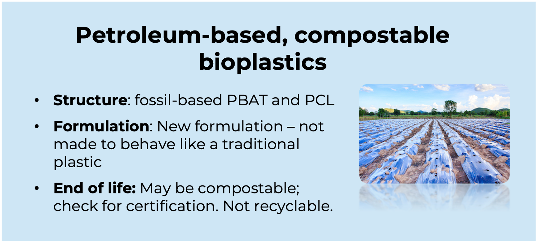 Lastly, “bioplastics” may be referring to materials polybutyrate (PBAT) and polycaprolactone (PCL).